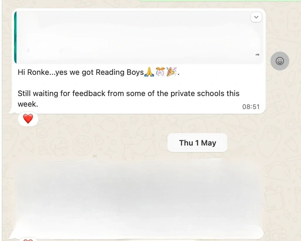 "Really grateful to Ms Fayinka for all the help and support given to our daughter from Year 4 up to the 11+ exam! She got into our chosen school. It was incredible to have someone you could reach out to for support during the process."